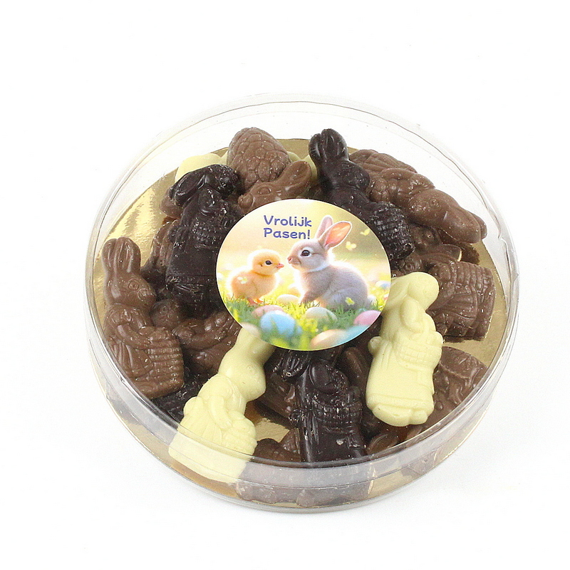 Een heerlijk paasgeschenk om van te genieten! Dit feestelijke paasboxje is gevuld met een smakelijke mini paasstol 100 gram en 5 heerlijke chocolade paaseitjes. Een perfecte combinatie voor een gezellig paasontbijt of een verwenmoment tijdens de paasdagen.